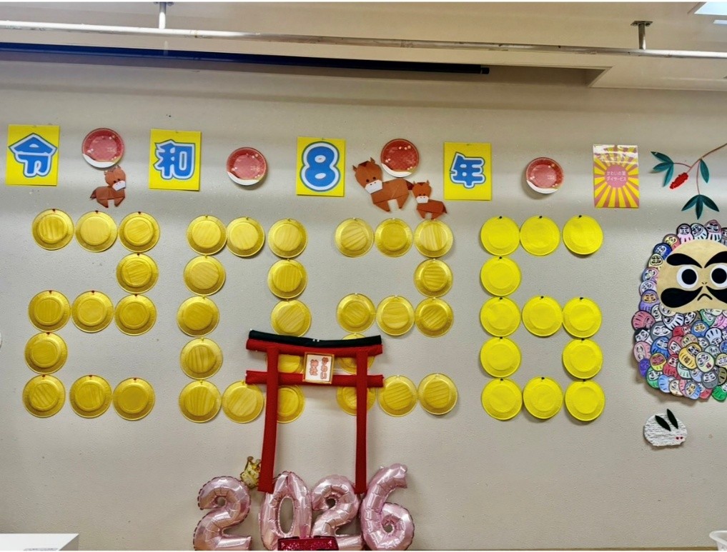 またデイサービス内には2026年の壁面飾りも完成し
